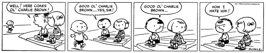 All too often, childhood is depicted as a serene place in pop culture, a time of simplicity and joy. But to quote the star of another incredible comic strip: “People who are nostalgic about childhood were obviously never children themselves.” The unfettered cruelty of children is unleashed upon not only Charlie Brown, but also supporting characters like Pig-Pen, Linus and even Snoopy. This is a world, much like our own, where orderly conclusions to turmoil don’t exist, where bullies win and anguish is all that greets one in the morning.