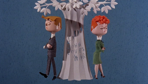 And that’s to say nothing of, say, The Pink Panther, a credit sequence that actually spawned a series of cartoons that had nothing to do with the movie. I’m talking more about things like The Parent Trap, where you get little stop-motion figures acting out a broken marriage. Or for a less-good movie, Catalina Caper and the diver-mermaid love affair. Films like Catch Me If You Can and Kiss Kiss Bang Bang have something of the feel, but not quite what I’m talking about. I’m talking about full-on cartoons.