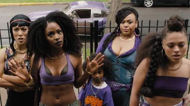 Chi-Raq suffers from a conflict of message because Lysistrata isn’t a subtle play. It steamrolls conflict into a matter of ego and urges. Men fight because men are men. Men and women lust because people are people. Women have power because they control the pussy. Hell, this idea has come up even in modern feminism. I’ve read op-eds saying, “If your boyfriend doesn’t support abortion or birth control, don’t fuck him.” Hell, John Waters has even semi-joked, “If you go home with somebody, and they don’t have any books on their shelves, don’t fuck them.” In a sense, all the men in Chi-Raq are reduced to egomaniacal killing fuck machines who bring home the dough. The women are, similarly, either mothers or fuck machines. The nuance that Lee brought to Bamboozled (or even School Daze) is almost completely absent in Chi-Raq, to make room for the satirical adaptation and the blunt dialogue completely delivered in sing-song verse (sometimes, so terrible that Shakespeare would weep).