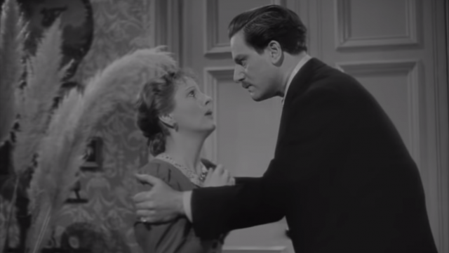 One of the things art can do is create language and symbols for us, and this is a work that both reflects and embodies a major tool of abuse. The biggest thing that people who study abuse try to convey is that abusers will spin a narrative that they weren’t in control of their actions when, in fact, they are downright obsessive about control – I remember reading about abusers who defended their physical abuse on the basis that they’d lost control of their temper, but when asked if they’d ever hit their mothers, would voraciously deny it; they can control whether they hit their mother, but not their partner? Anton Walbrook as Paul (or rather Louis) sells us on the idea of a man who is complete control of every aspect of his environment; if something happens around him, it’s because he either willed it or allowed it, and everything that comes out of his mouth is either a command or a judgement, and Diana Wynyard as Bella conveys the terror of, in turn, having to control one’s every action in the face of a creature that will severely punish misdeeds, only to find one has no control in the first place, increasingly surrendering your control to someone who cannot be entirely trusted. At the same time, Louis (or Paul, if you prefer) has his own terror, a constant anxiety that 100% control will slip to even 99% control, his smooth movements and hard expression softening like jelly. This is a deeply anxiety-inducing movie, as both heroine and villain alike are constantly living on the edge.