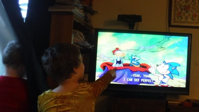 It’s always interesting to me what shows from before his time my son Simon gets into. I don’t remember playing this for him—well, I’m slightly too old to have been the slightest interested in watching it when it aired originally. I’m not sure if his father cared, come to that. There are a few shows he got into that way, and this might be one of them. But I don’t think so. Maybe it ties into all those gaming videos he’s watched on YouTube; he might have gotten into Sonic that way.