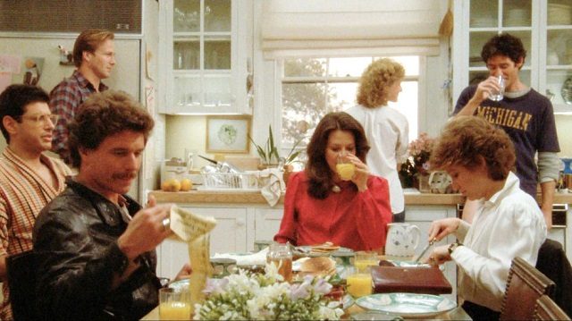 My family used to have a movie on in the living room and cards at the dinner table in full view of the television. The movies were usually crowd pleasers, ranging from When Harry Met Sally to Die Hard, and they were a source of discussion afterward. Those uninterested could drink and play cards, or find other activities to do.