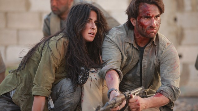 That sense of satire isn’t lessened by the presence of hunky Saif Ali Khan as the lead. The main problem is purely aesthetic. Saif is studly, with all the right looks for a model, with one big exception: he is somewhat cross-eyed. When Kabir Khan gives us a strong propagandic image of Daniyal standing strong against a sunset looking into the camera, Saif’s natural cross-eyed look undercuts the perfection in a way that makes the whole image fall into parody. To be fair, this isn’t a problem when Saif is acting and the camera is moving, but Kabir Khan repeatedly gives striking images of Saif just looking, and it undercuts the movie even more than the simplistic dialogue1 (or at least the simplistic subtitles), or the ridiculous Bondian nationalistic revenge plot.