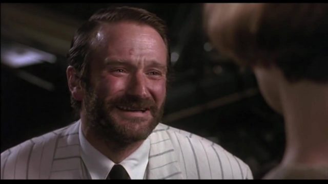 A lesser movie might have turned this tale and these character dynamics into pure schmaltz, but luckily, The Fisher King is not a lesser movie at all. In fact, it’s one of the strongest depictions of mental illness I can recall in a mainstream American movie. Now, American cinema’s depictions of people with mental illness has been…not great overall. Mostly, people with mental illness exist as supporting characters whose impairments are meant as a source of comedy and who solely serve as a way to prop up the lead character not suffering from mental illness. Now while it’s true that Parry helps out Jack with his own problems, the two are more equal leads than a “hero/sidekick” dynamic in The Fisher King.