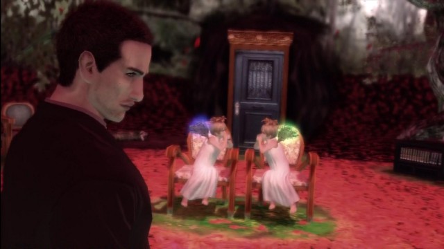 The story is what you would get if you asked a Japanese person to re-write Twin Peaks based only on a synopsis and a few commercials. Agent York Morgan, an FBI agent who also has multiple personality disorder – he constantly talks to Zach, a person in his head – comes to Greenvale to investigate the murder of Anna, a teenage waitress who dreamed of becoming a model in the big city. To get to the bottom of the murder, York must investigate the quirky townfolk while also traversing to a ghostly otherworld full of zombies, periodically being interrupted by dream sequences with red and white rooms (black and white lodge). York is also obsessed with coffee. He loves coffee. He sees letters floating in his coffee. He gets fortunes from his coffee. He gets tired and hungry as the days go by, and you can drink coffee and eat food like cherry pie to stave off both qualities.